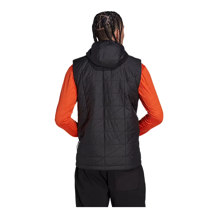 Online Only: Shifting weather is part of the adventure. Prepare for it with this adidas insulated vest. A core-warming layer you can throw on over a t-shirt or under a raincoat, it’s a go-to for every outing, from cloudy-day hikes to mid-summer alpine routes. Zip it up high for extra coverage, or pack it away when you heat up. The shoulder construction feels comfortable under backpack straps. Reflective details at the chest and armholes provide 360 degree reflectivity. To reduce adidas’ reliance on virgin materials, they make sure that their vegan alternatives also contain a minimum of 25% recycled content.