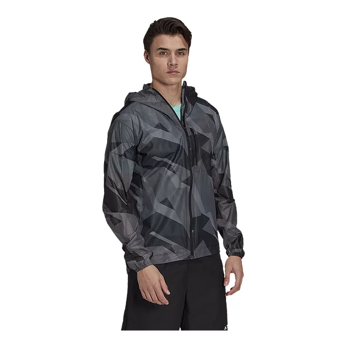 Online Exclusive. Weather happens. Head for the trails ready for anything. This adidas Terrex trail running rain jacket keeps you dry and comfortable through wet conditions. It’s waterproof, breathable and lightweight enough to stow into the chest pocket for easy storage. There’s plenty of stretch for unrestricted movement and the versatility to handle adventure near and far.