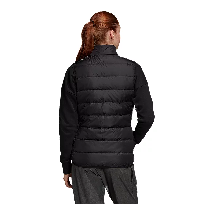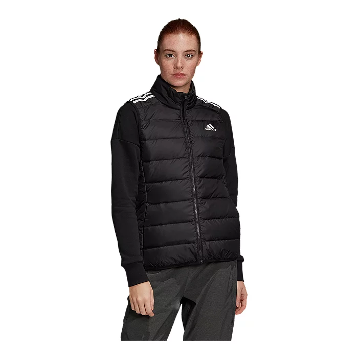 Online Only. City street or mountain village, layering is your ticket to staying warm. The adidas Essentials Down Vest seals in the heat with the unbeatable warmth of down. It’s light enough to layer in cold weather and warm enough to stand alone on cool days. And it’s made with recycled materials that you can feel good about.
