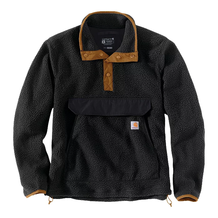 This men’s Carhartt pullover gives you a warm layer to wear on the jobsite or off. Made of heavyweight fleece, with a quarter-snap front and relaxed fit. Reinforced pockets hold small essentials, and a drawcord at the hem lets you adjust the fit.