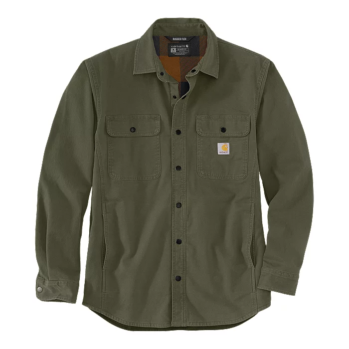A workwear go-to, this men’s Carhartt shirt jacket is ready for cold days on the job. A fleece lining adds comfort and extra warmth. The roomy relaxed fit and durable stretch canvas give you the range of motion needed to stay working.