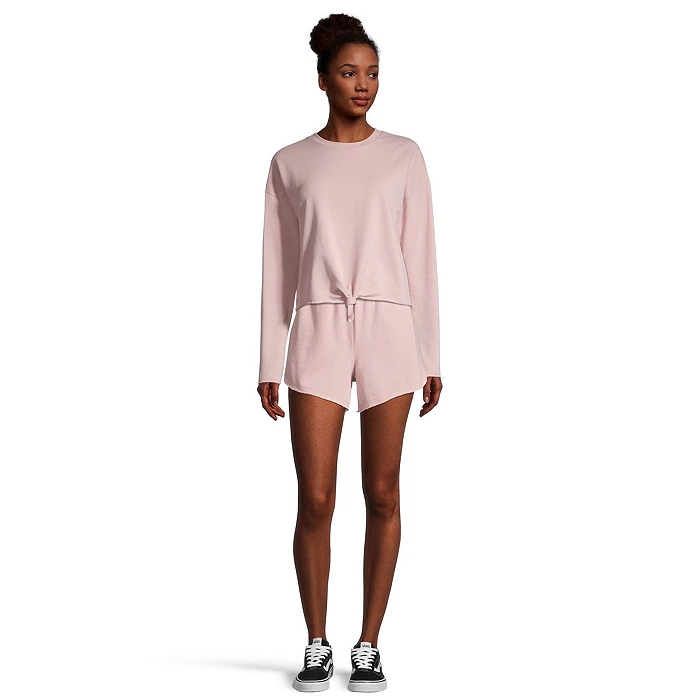 Effortlessly cool cropped long sleeve tee that has a knot front design and a soft cotton feel.