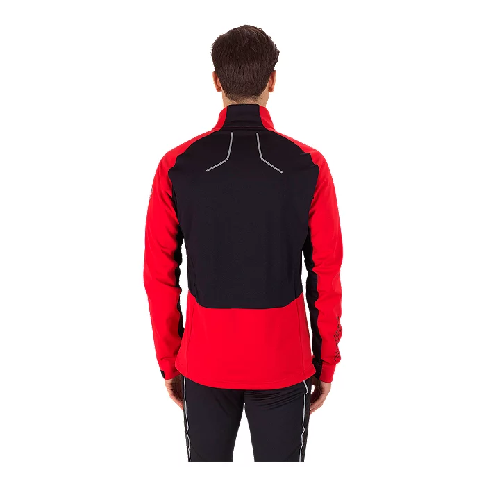 Designed as a lightweight, breathable shell for Nordic skiing, this men’s soft shell jacket offers wind and weather protection with a three-layer build. A stretch back panel enhances breathability for temperature regulation and ensures a full range of motion as you reach and extend through every stride. The soft brushed interior adds warmth, while zip side pockets and a small zip wrist pocket hold your trail pass, car keys or ID.