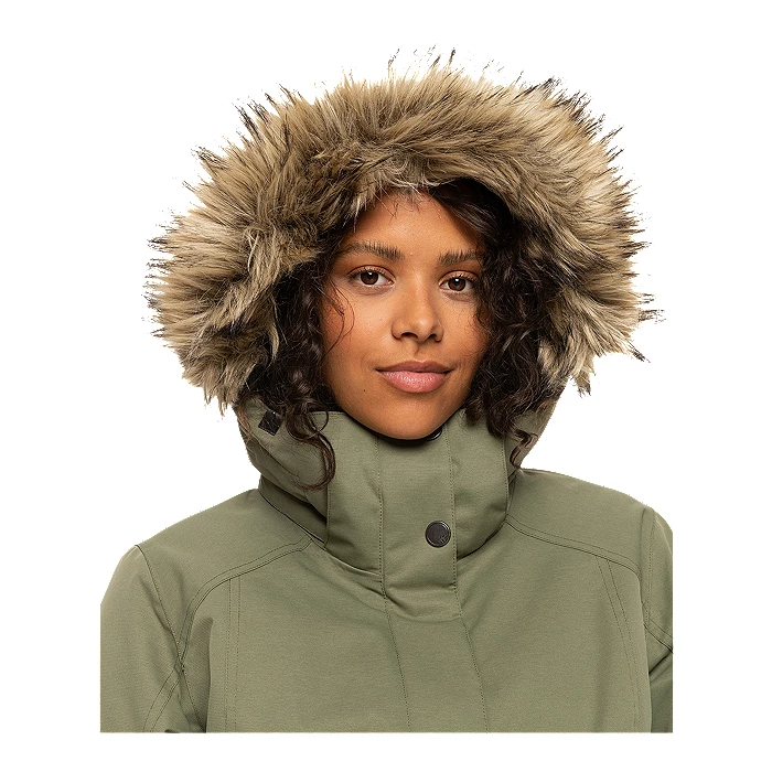 - 3-way adjustable and removable hood, Removable faux fur at hood, chin guard with ROXY HydroSmart technology integrated in the collar
