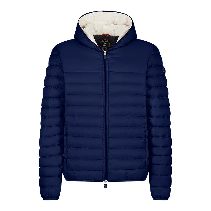 The Save The Duck men’s Giga sherpa hooded jacket is built for comfort in the outdoors. Featuring a water-resistant and windproof exterior and a durable polyurethane coating for superior protection from the elements. It has a durable nylon inner fabric, two zippered pockets and elastic cuffs.