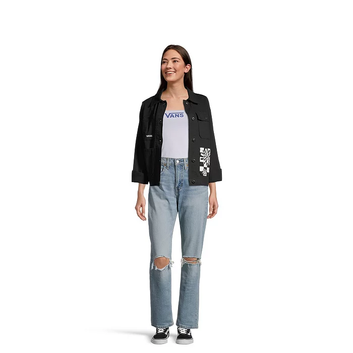 The Women’s Divine Energy is 100% Cotton Peached canvas relaxed drop shoulder jacket with patch pockets, novelty screen print front pocket, interior hidden messaging, and logo embroidery.